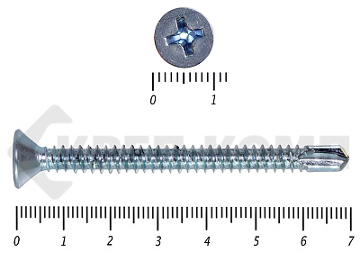 Оцинкованные потайные саморезы со сверлом DIN 7504 P – имеют полную резьбу и сверло на кончике. Потайная головка при вкручивании входит в материал и не выступает на поверхности. Такими саморезами можно закрепить листовые отделочные материалы из пластика, металла, фанеры к металлическим конструкциям. Саморез может высверливать отверстие в углеродистой стали толщиной до 4мм.