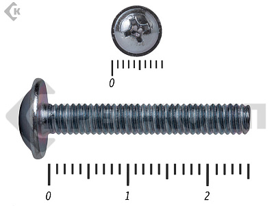 Конструктивные особенности изделия крепежа обеспечивает необходимое усилие затягивания без опасности отвёрткой повредить шлиц. Винты с полукруглой головкой используются при монтаже лицевых панелей и внешних поверхностей, повышая эстетические качества детали.